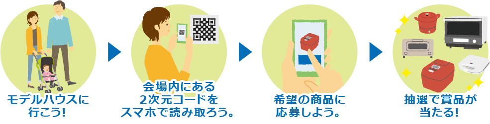 ※1会場で獲得できるスタンプはひとつです。(最大5回応募が可能です。)※応募は4月29日から5月5日までとなります。※応募にはアンケート記入が必要となり ます。※発送の都合により、ご応募は札幌市内および近郊の方に限らせて頂きます。※当選商品の交換、換金等は応じかねますので予めご了承ください。※当選 有無に関するお問い合わせはご遠慮ください。※厳正なる抽選の上、ご当選者さまには直接ご連絡または商品の発送をもって当選にかえさせて頂きます。(商品 の発送は(お届け)は6月上旬予定。)※当選者さまの権利は第三者への譲渡は出来ません。※ご記入頂いたお客様の個人情報は建築工事・増改築工事・リフォー ム工事などに関する設計・管理・施工、不動産の売買・賃貸・仲介・管理その他の当社定款所定の事業を実施するにともない、各種資料・ご案内などの配信・送付・ お届け、ご連絡・ご訪問・お打ち合わせ・計画などのご提案、アンケート調査などの実施・集計・活用その他の営業活動を行うなどの目的で利用いたします。