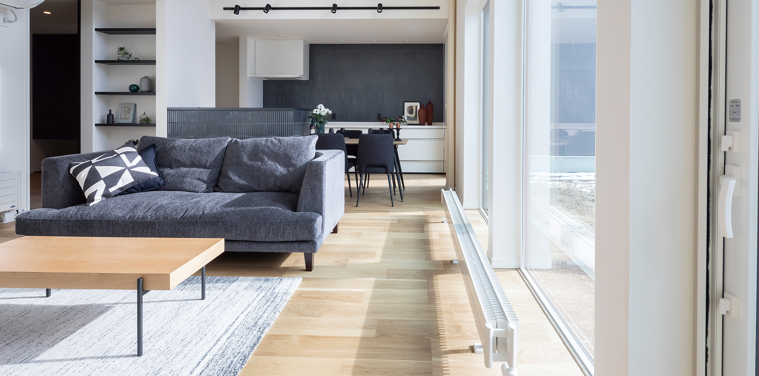 冷温水冷暖房ユニットをリビングダイニングに設置。暖かく快適な空間を演出します。